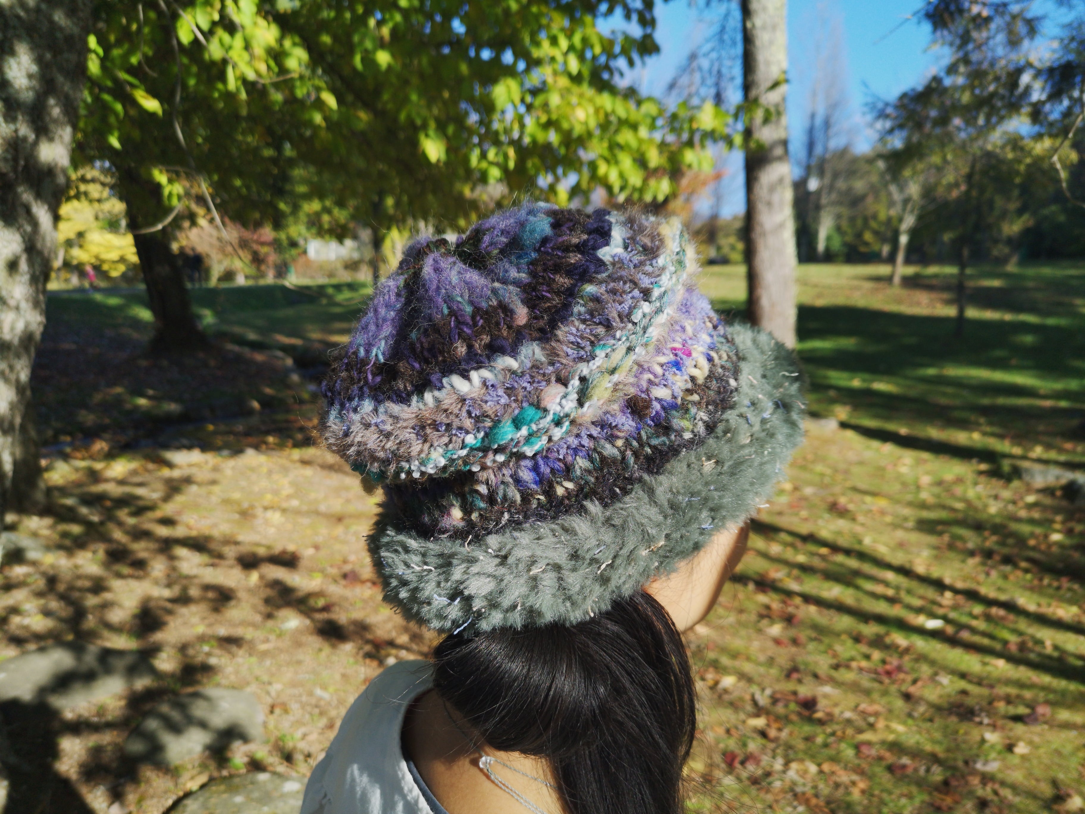 *手紡ぎ糸を混ぜ込んで編んだ帽子*