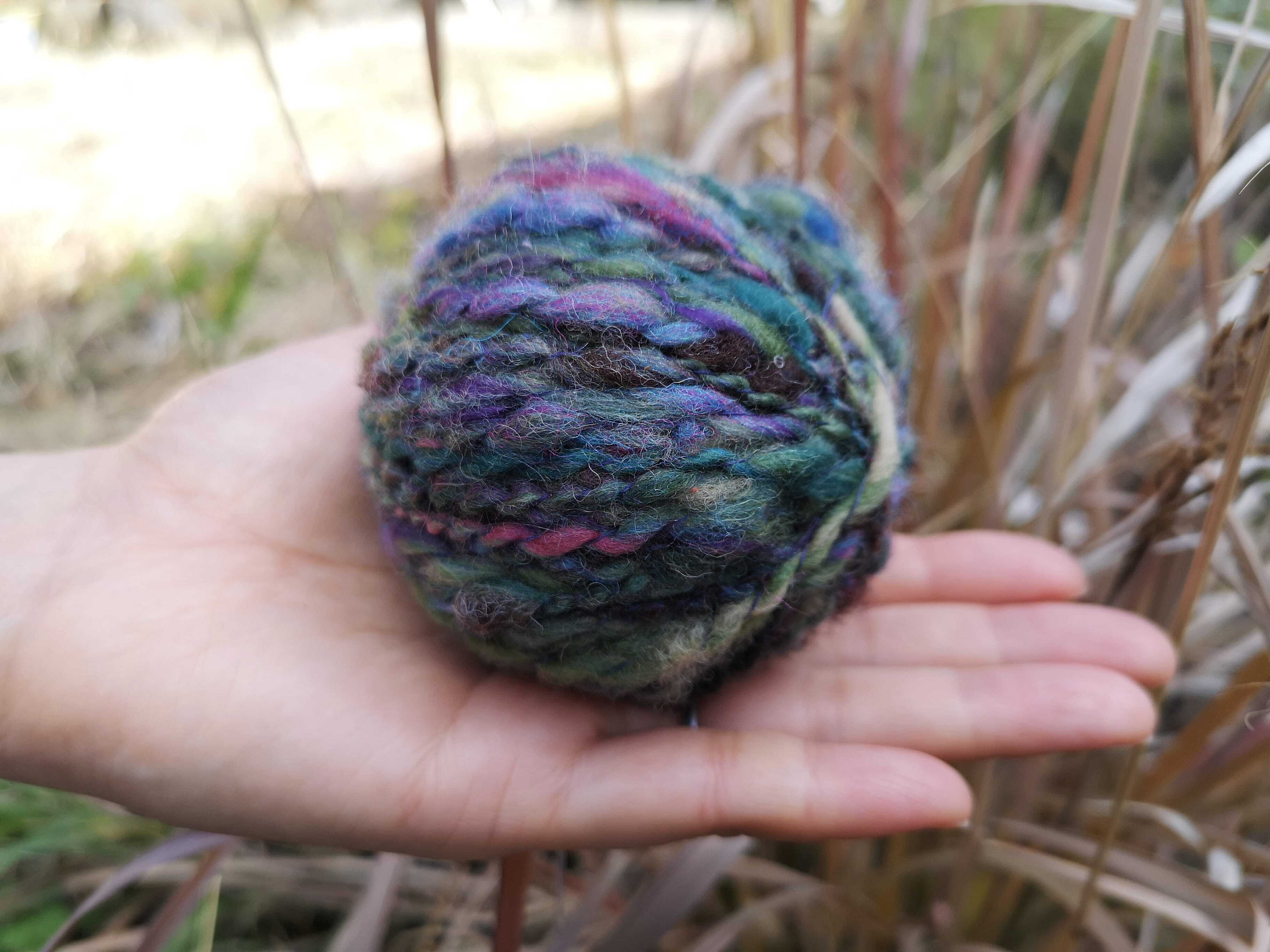 (参考写真)... 原毛の茶、白、染め羊毛(藍、蕗、コチニール、その他)を混ぜています。