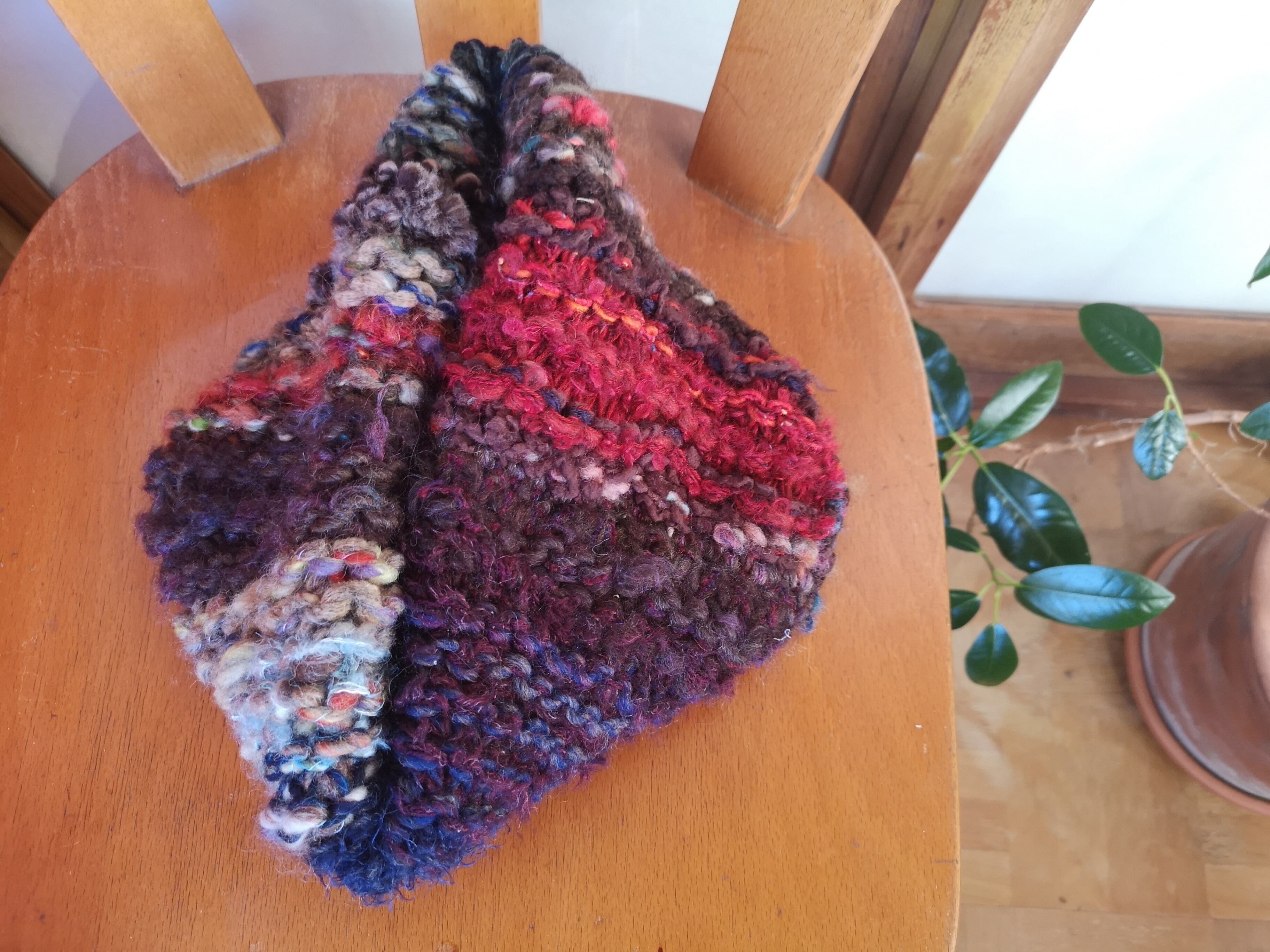 (藍、蕗、茜etc...手染め羊毛を混ぜながら紡いでいます)