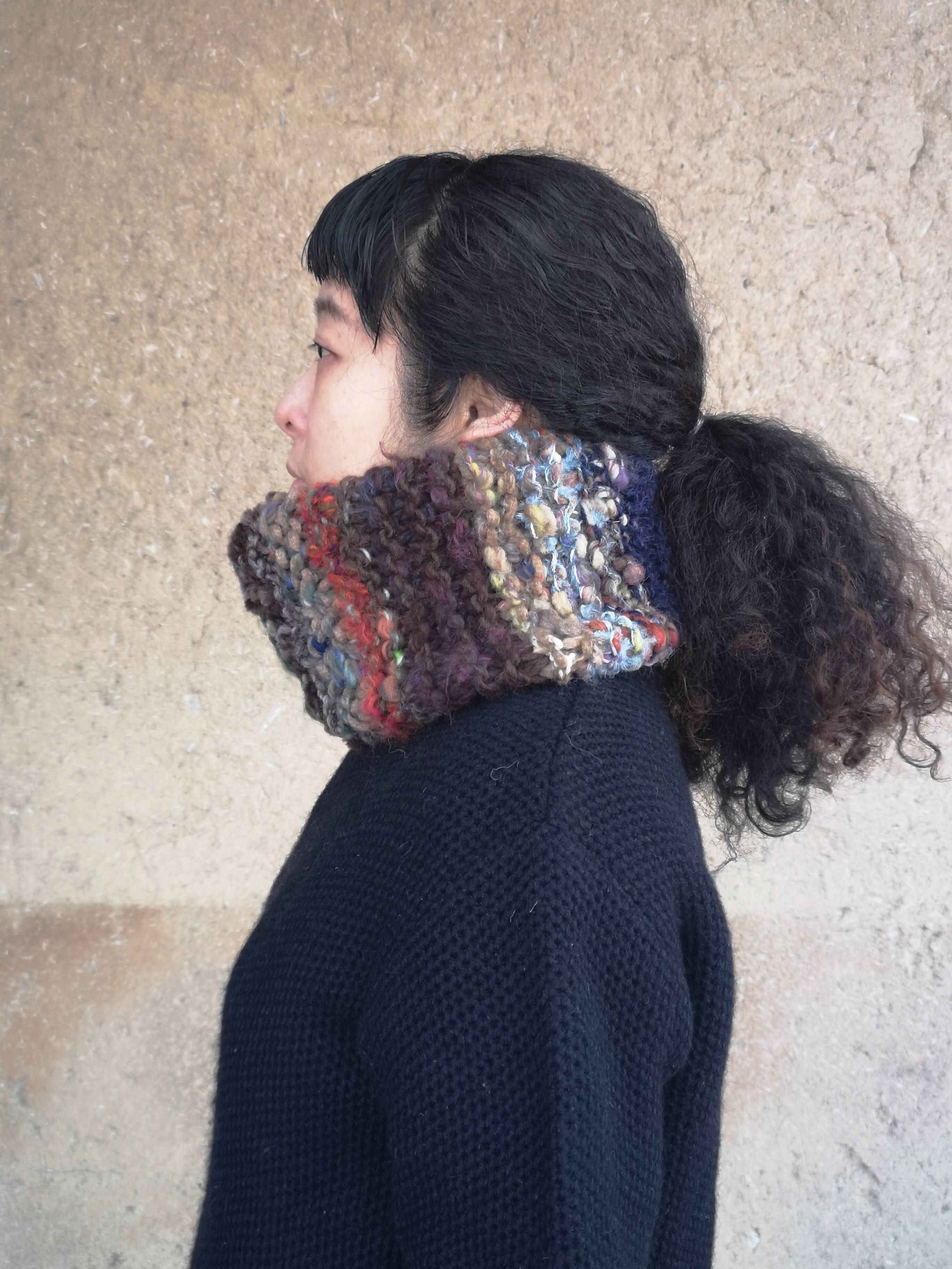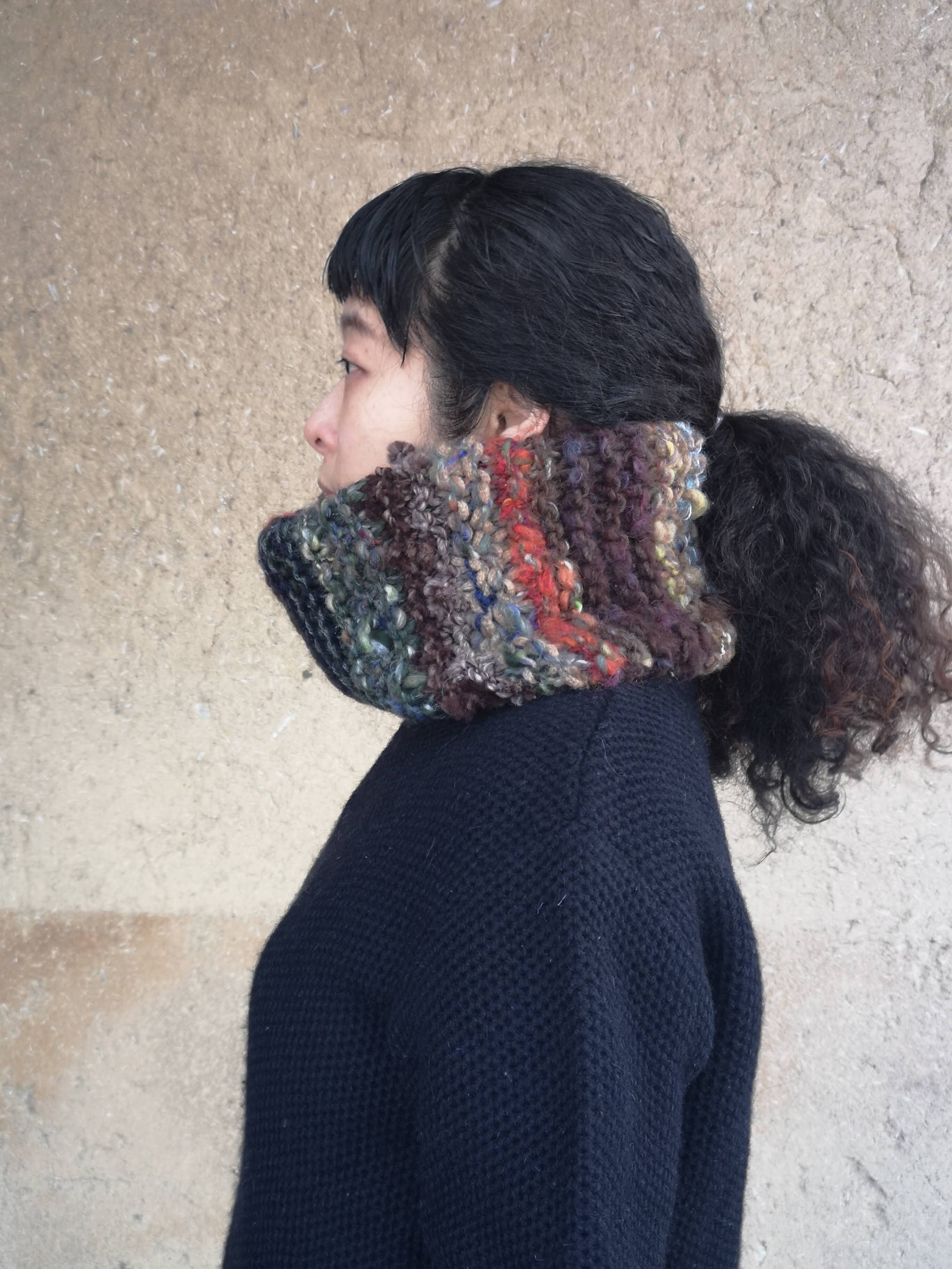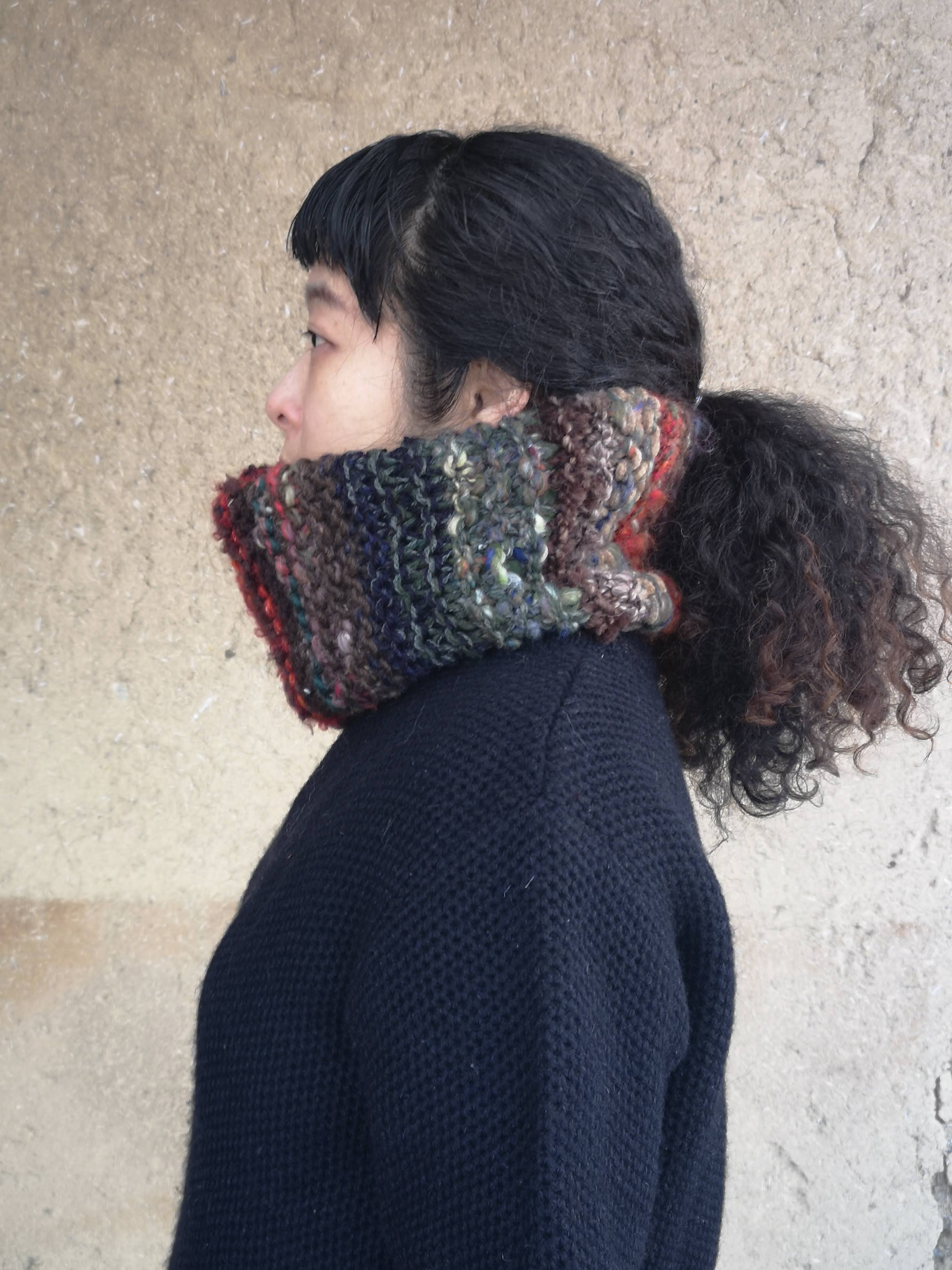 筒状に編んでいるので、タートルネックのように折り込んで高さ調節できます。